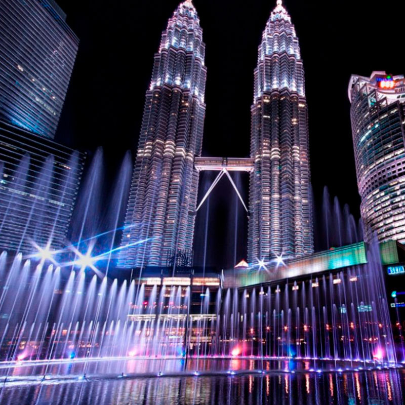 The Petronas Towers, also known as the Petronas Twin Towers in Kuala Lumpur, Malaysia. This amazing building of 452 meters of height (88 floors and 32.000 windows) is one of the tallest in the world.