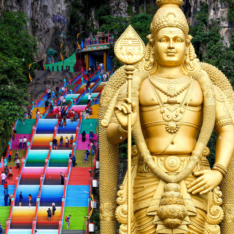Batu Caves, one of Kuala Lumpur’s most frequented tourist attractions, is a limestone hill comprising three major caves.